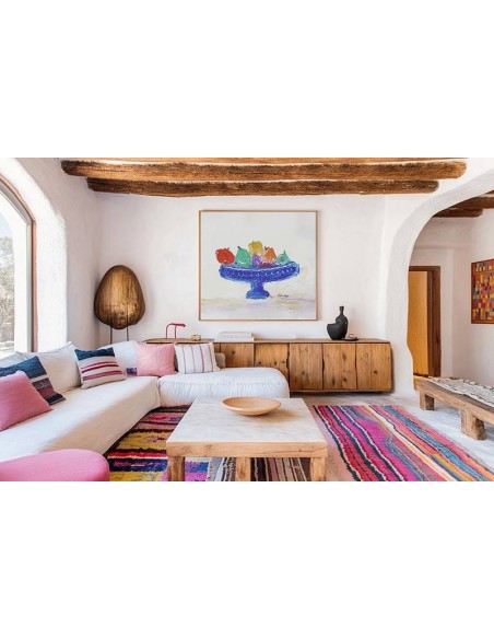 IIlustración abstracta de un frutero, jugando con colores muy vivos. Elegante estética, ideal para destacar cualquier ambiente. Disponible en diferentes tamaños y acabados.
