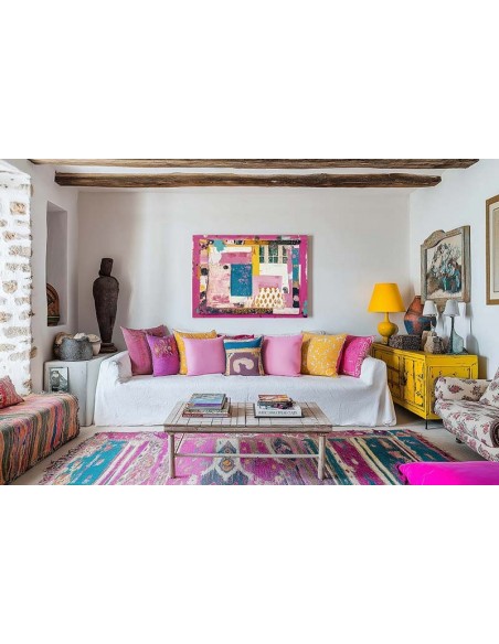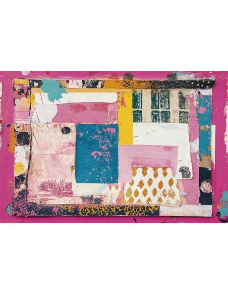 Ilustración abstracta combinando formas básicas y jugando con colores muy vivos. Elegante estética, ideal para destacar cualquier ambiente, con un toque moderno. Disponible en diferentes tamaños y acabados.