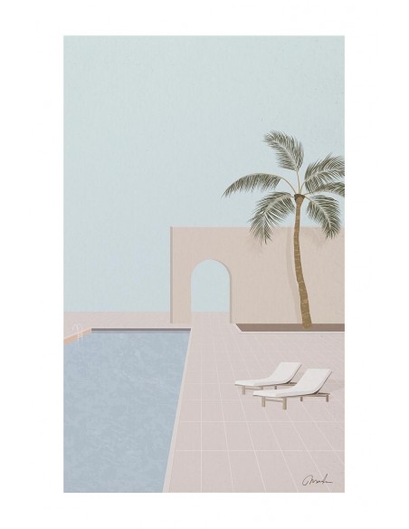 Relájate contemplando esta ilustración de una piscina de lo más tropical. Reproducción de la obra de Marta Gonzalez.