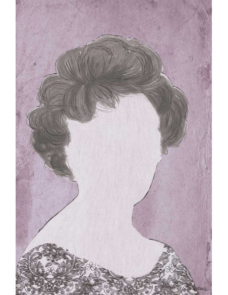 Un retrato femenino con un estilo vintage, sobre un fondo lila. Reproducción de la obra de Bruno Vázquez.