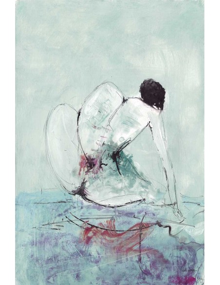Una ilustración de la silueta de una chica de espaldas. Una reproducción de la obra de Ruth Design.