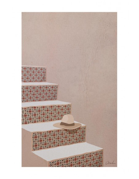 Estas escaleras te invitan a soñar con un destino mágico. Descubre todos los detalles en las escaleras y el sombrero de la ilustración. Obra de Marta Gonzalez.