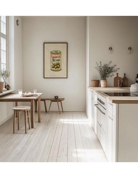 Ilustración original de lata de aceitunas para dar un toque divertido a cualquier espacio de cocina. Disponible en varios tamaños y acabados.
