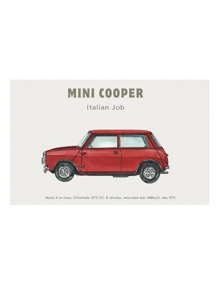 Art Poster de "Coche Italian Job" para los locos por cine. Otros modelos y películas disponibles. Reproducción del dibujo de César Ortiz Echagüe. Disponible en tamaños.