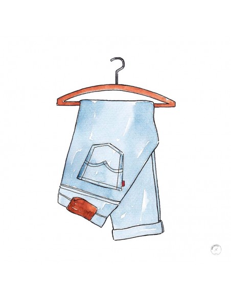 Imagen de pantalón colgado de una percha, diseño de Valeria Rienzi. Combina este cuadro para formar un collage