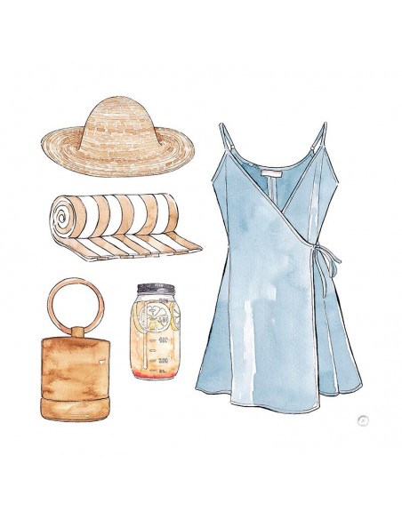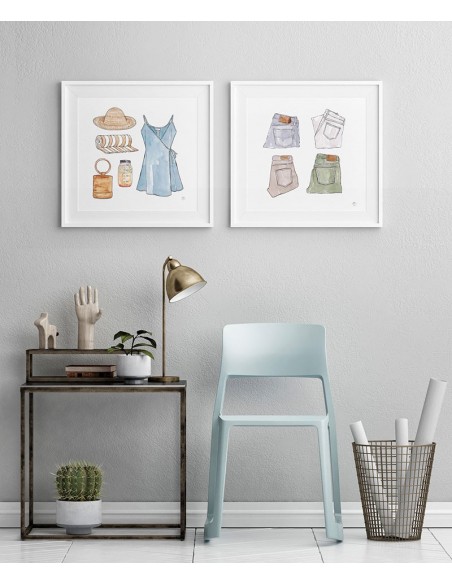 Composición de prendas veraniegas. Diseño de Valeria Rienzi. Combina este cuadro para formar un collage