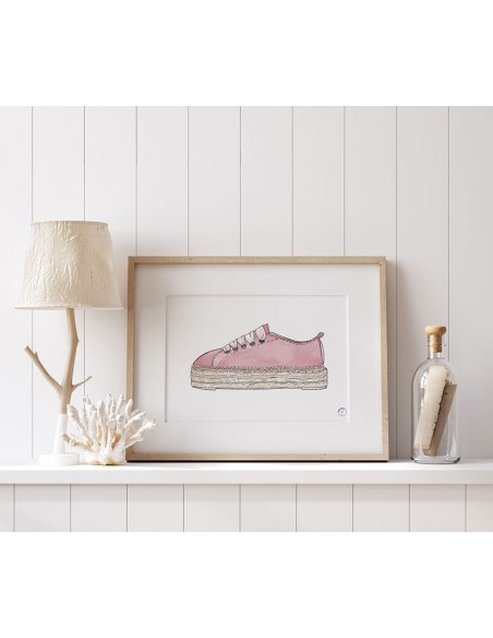 Zapatilla de esparto en rosa diseño de Valeria Rienzi para los amantes de la moda. Combina este cuadro con otros para hacer un collage