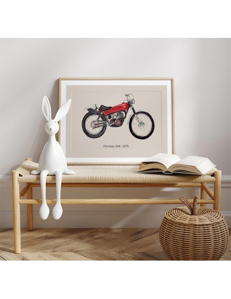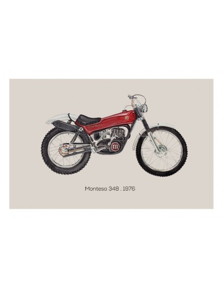 Poster Vintage de la motocicleta "Montesa 348". Una ilustración del artista César Ortiz Echagüe disponible en varios tamaños y acabados. Ideal para regalar a los amantes de las motos. Combinala con otros modelos de motocicletas disponibles.