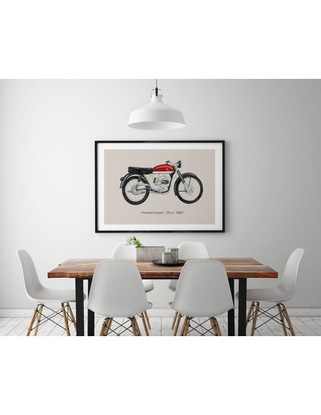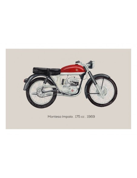 Art Poster de la motocicleta "Montesa Impala" para los locos por las motos. Una ilustración del artista César Ortiz Echagüe disponible en varios tamaños y acabados. César reinterpreta esla mítica motocicleta a su estilo.