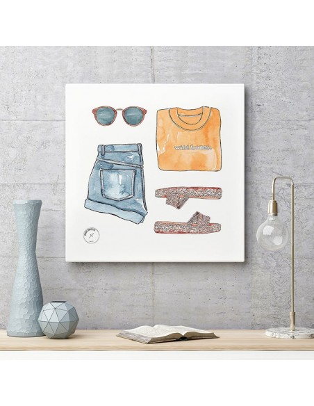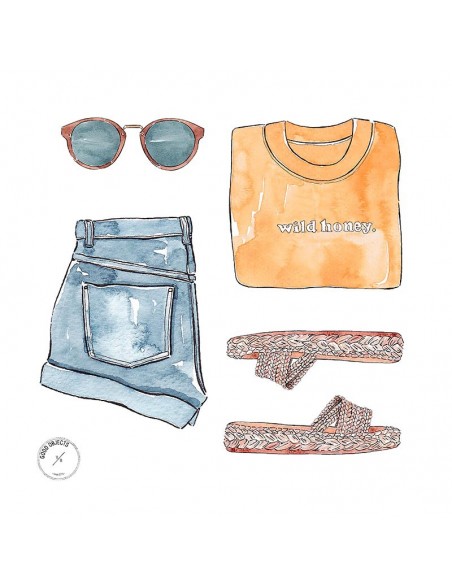 Composición de prendas veraniegas. Diseño de Valeria Rienzi. Combina este cuadro para formar un collage