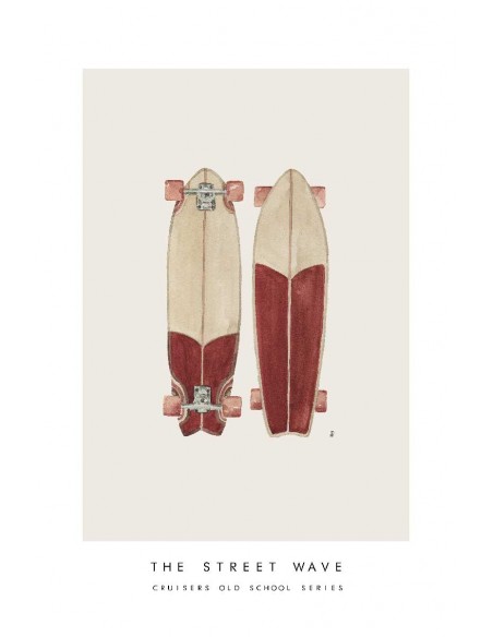 Ilustración de monopatín estilo retro. Otros modelos y colores disponibles. Reproducción del dibujo de César Ortiz Echagüe