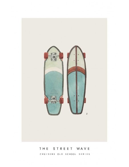 Ilustración de monopatín para los amantes del vintage. Otros modelos y colores disponibles. Reproducción del dibujo de César Ortiz Echagüe