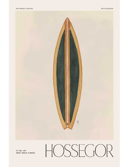 Ilustración de tabla de Surf estilo retro. Otros modelos y colores disponibles. Reproducción del dibujo de César Ortiz Echagüe