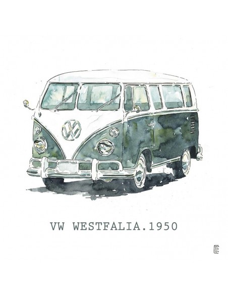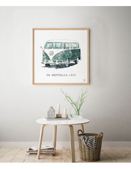 Cuadro de la furgoneta Westfalia para los románticos de los coches retros. Diseño de César Ortiz Echagüe. Otros modelos disponibles