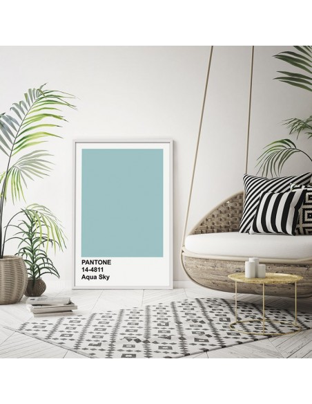 Cuadro minimalista con una muestra del catálogo Pantone, el nombre y su código correspondiente.