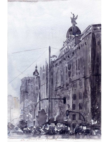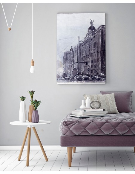 Vista urbana en un día gris, reproducción de César ortiz Echagüe