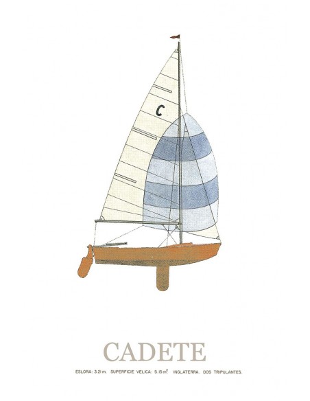 Barco velero "Cadete" sobre fondo blanco. Varios modelos para formar una colección