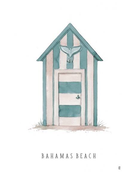 Vista frontal de antiguas casetas de playa en color azul. Más modelos de casetas disponibles. Combina las que más te gusten. Reproducción del diseño de César Ortiz Echagüe