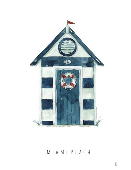 Vista frontal de antiguas casetas de playa en color azul. Más modelos de casetas disponibles. Combina las que más te gusten. Reproducción del diseño de César Ortiz Echagüe