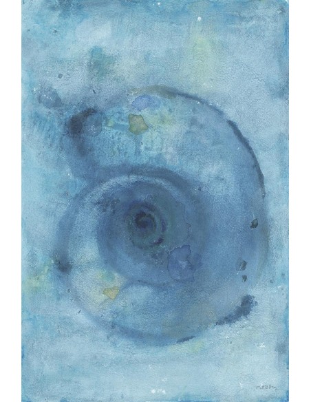 Silueta de caracol en fondo turquesa, reproducción de la obra de Marta Castet Bellocq.