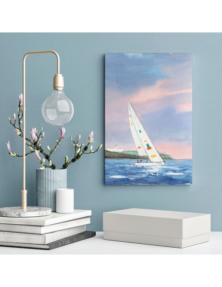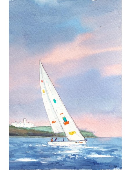Paisaje marino con velero de velas blancas en alta mar. Diseño de Ruth Design .