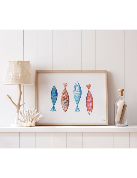 Composición de peces multicolores en posición vertical Reproducción del diseño de Ruth Design