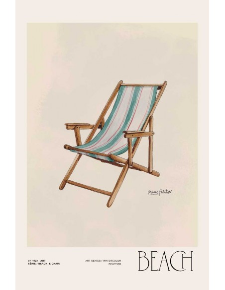 Tumbona de playa de rayas azul y roja. Diseño de María Peletier.