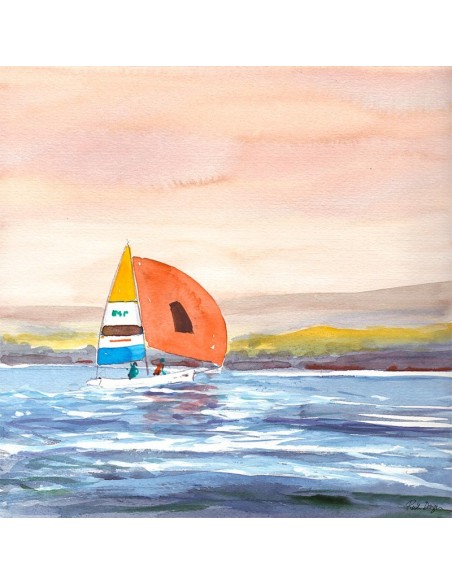 Barco velero en varios colores con las velas al viento. Reproducción del diseño de Ruth Design