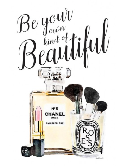 Ilustración de un perfume y brochas de maquillaje. Diseño de Amanda Greenwood.