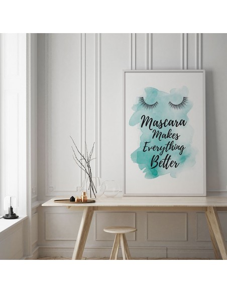 Diseño minimalista de unas pestañas con frase. Ilustración de Amanda Greenwood.