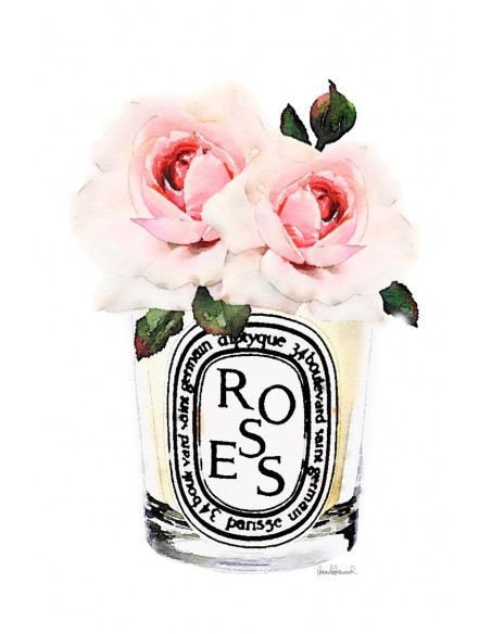 Ilustración de una vela aromática con flores. Diseño de Amanda Greenwood.