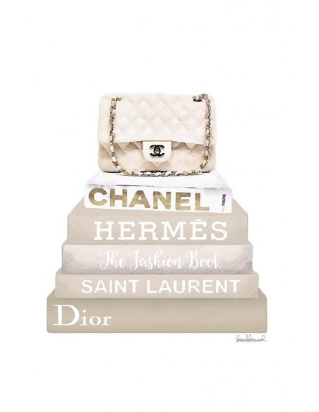 Ilustración de libros de moda con un bolso. Diseño de Amanda Greenwood.