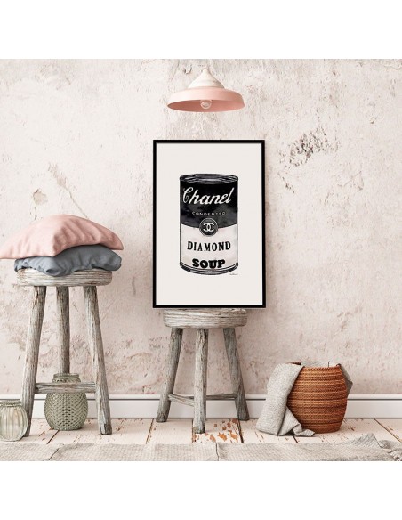 Ilustración de la famosa lata de sopa al estilo Chanel. Diseño de Amanda Greenwood.
