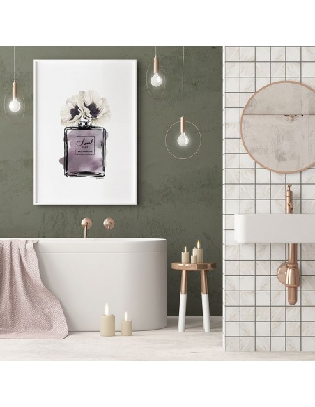 Ilustración de un frasco de perfume con flores. Diseño de Amanda Greenwood.
