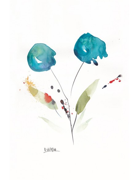 Pareja de dos amapolas en color turquesa. Reproducción del original realizado por Bruno Vázquez