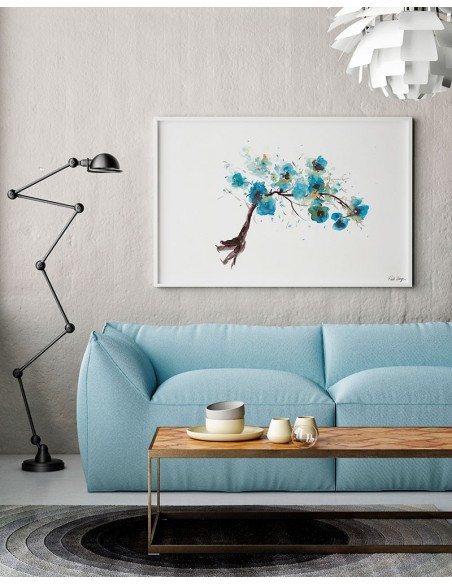 Arbol en flor de pequeñas flores turquesas, reproducción de la artista Ruth Design