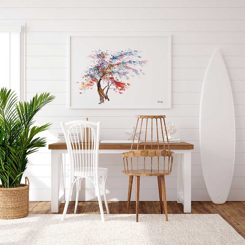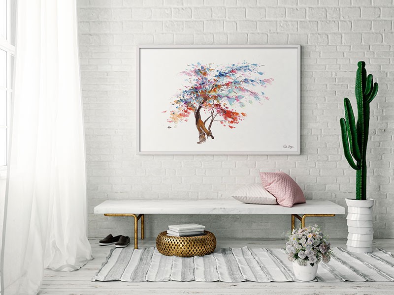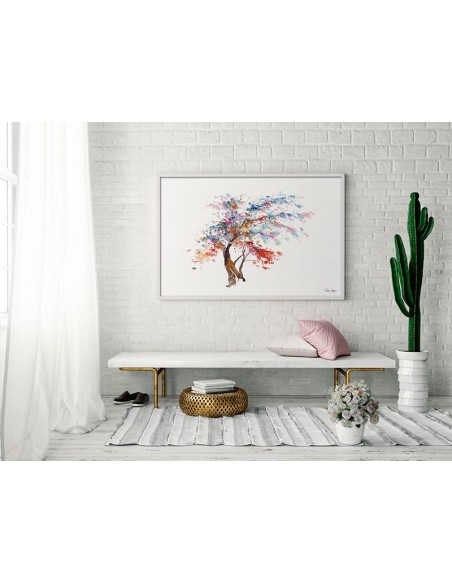 Arbol en flor de pequeñas flores multicolores, reproducción de la artista Ruth Design