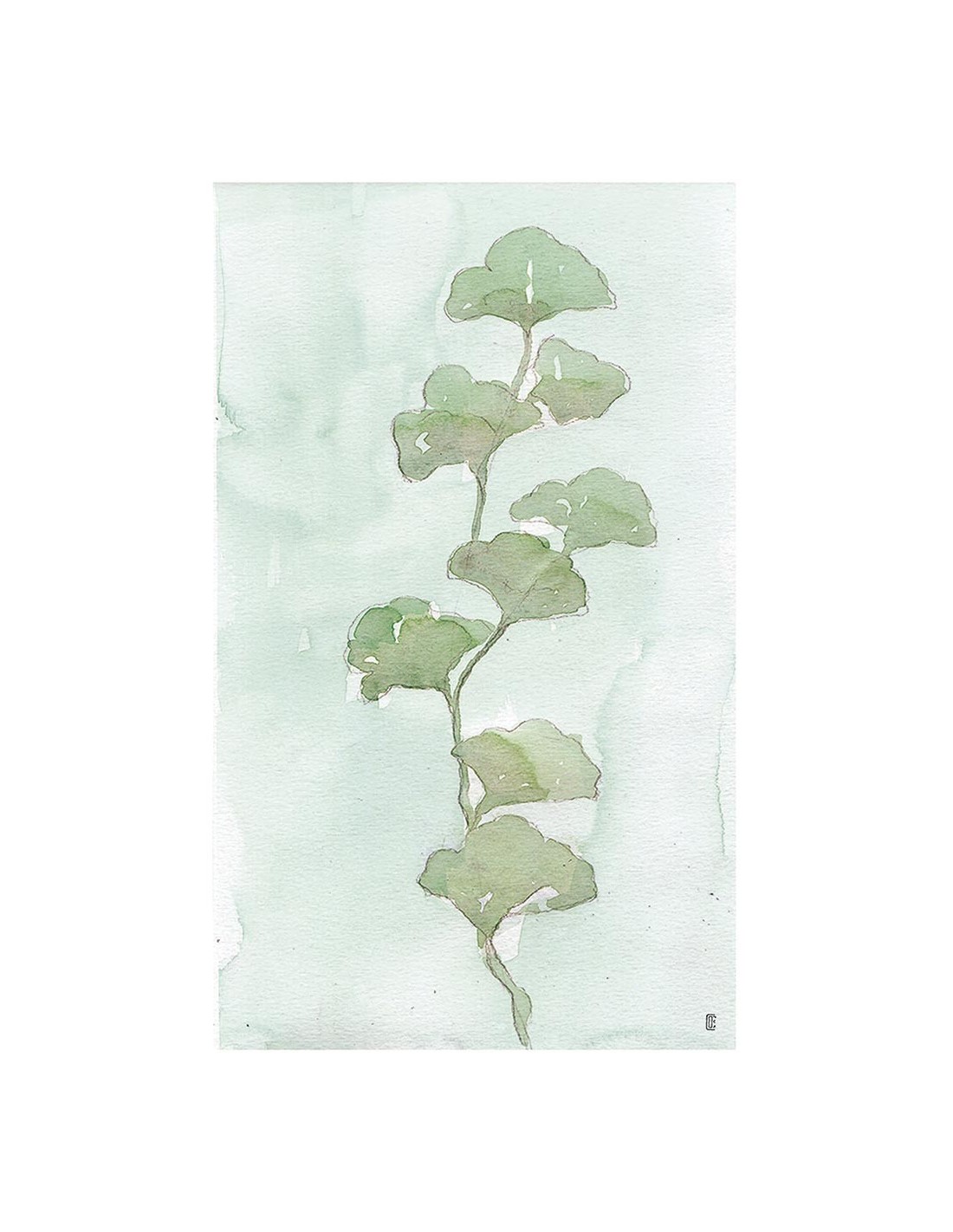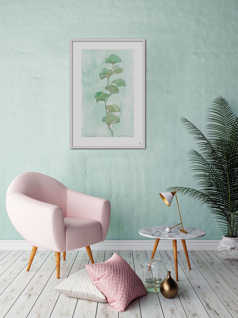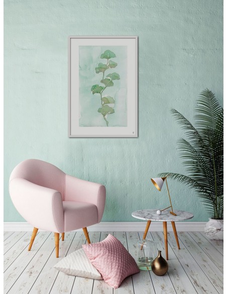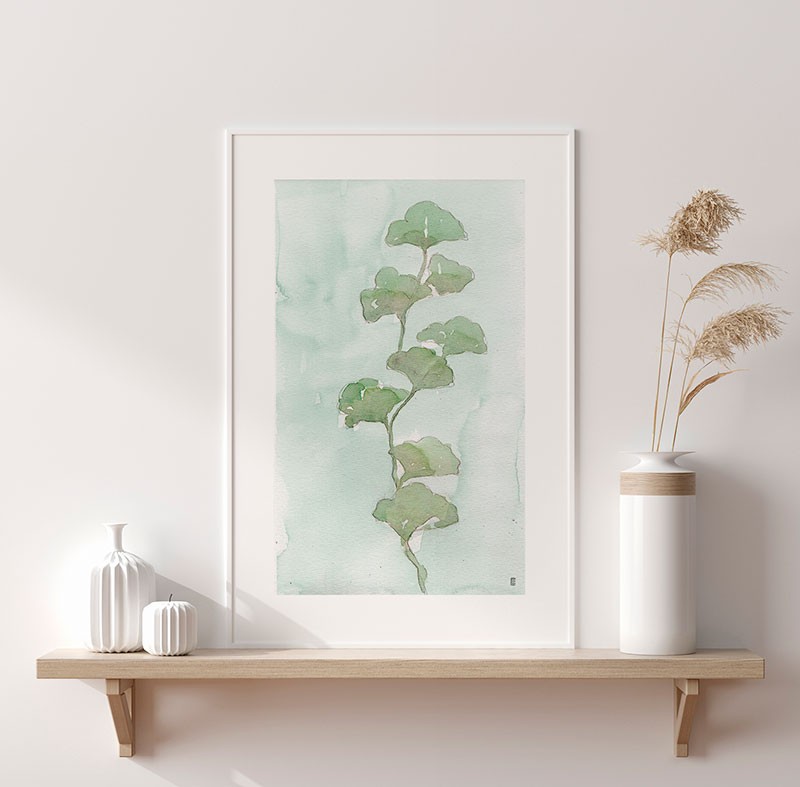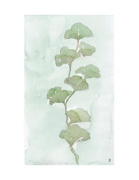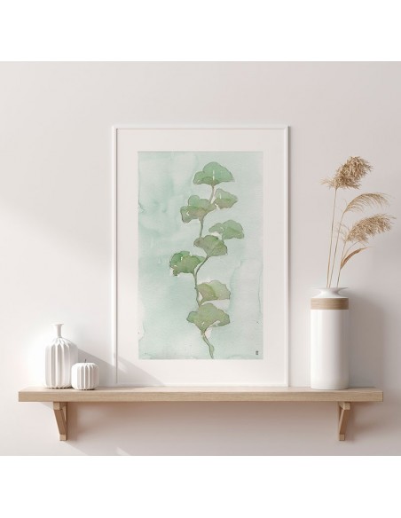 Cuadro de planta verde sobre un ligero fondo de acuarela, reproducción del artista César Ortiz Echagüe.