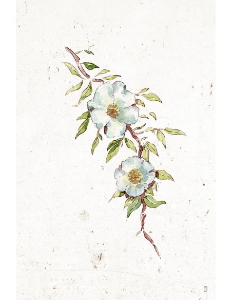 Flor con tallo verde estilo vintage, reproducción del dibujo de César Ortiz Echagüe.