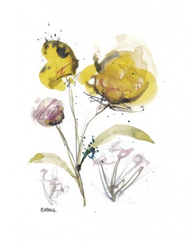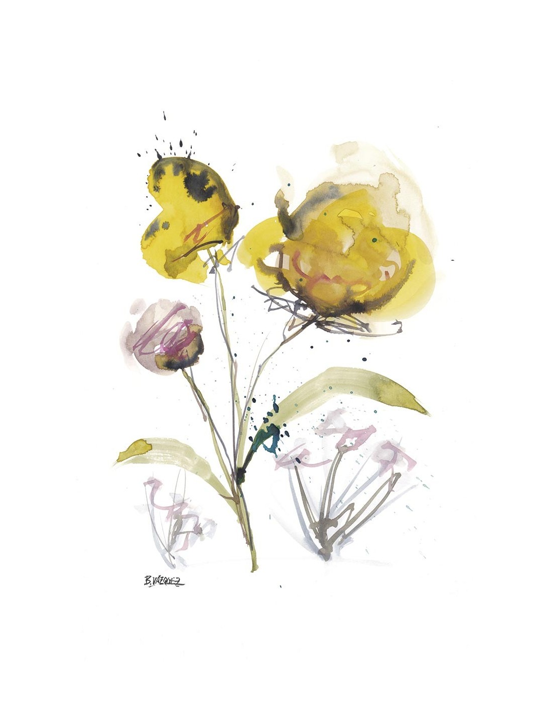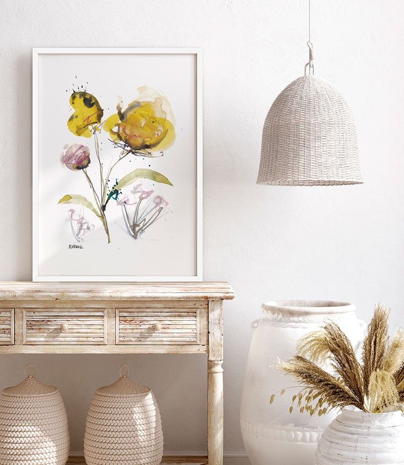 Pareja de flores amarillas, reproducción del diseño de Bruno Vázquez