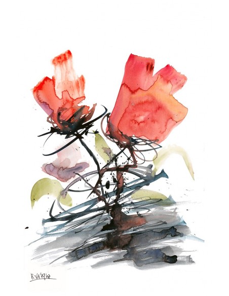 Pareja de flores rojas diseñadas por Bruno Vázquez. Para decorar cualquier rincón con flores