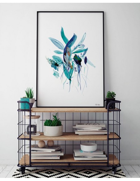 Obras Hojas Ruth III JU62 Desde 7,67 € 10,95 € Flores turquesas sobre fondo blanco, diseño de Ruth Design Ver