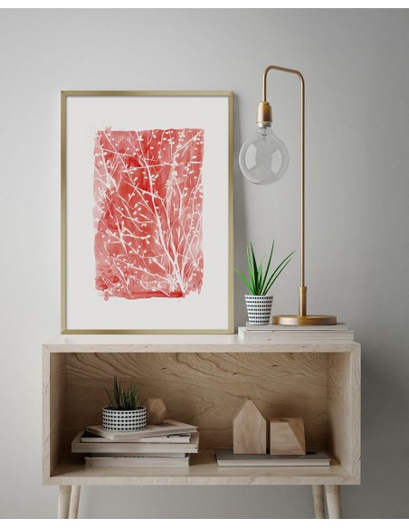 Plantas en color coral, reproducción del cuadro de César Ortiz Echagüe.