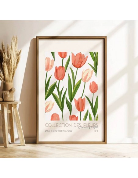 Ilustración de tulipanes rosas ideal para dar frescura y sofisticación a cualquier espacio. Con un diseño limpio y moderno, esta lámina captura la belleza de estas flores icónicas en tonos suaves y vibrantes. Perfecta para aportar un ambiente cálido y acogedor. Disponible en varios tamaños y acabados.