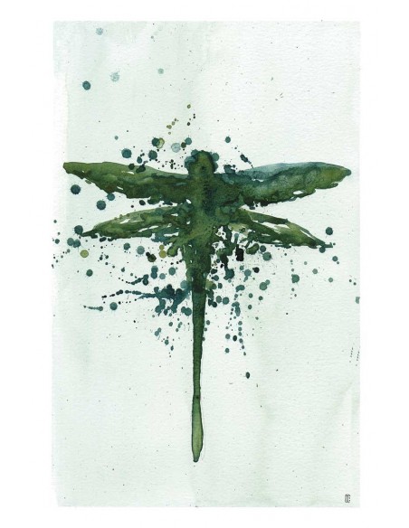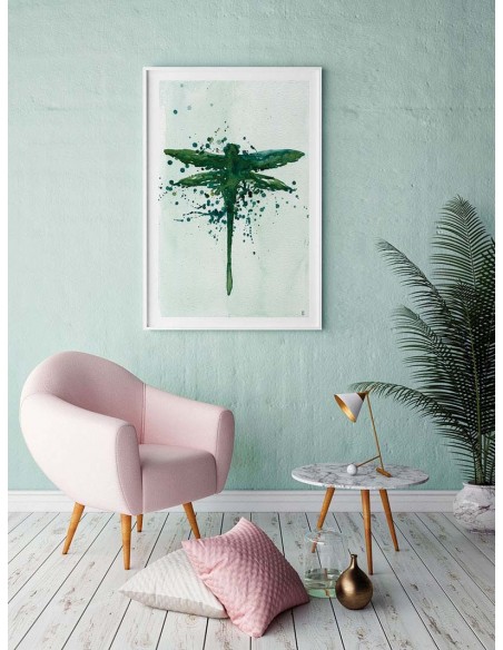 Cuadro de libelula color verde en primer plano. Reproducción del original de César Ortiz Echagüe
