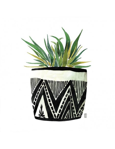 Cuadro de planta verde en macetero blanco y negro. Otros modelos disponibles. Artista: César Ortiz Echagüe. Para los amantes del estilo Boho