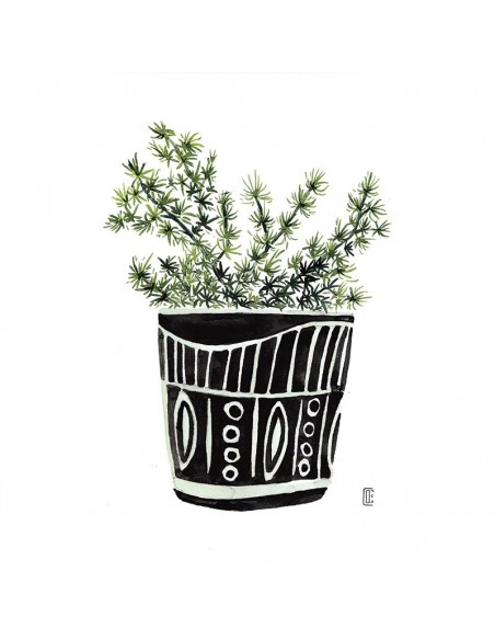 Cuadro de planta verde en macetero blanco y negro. Otros modelos disponibles. Artista: César Ortiz Echagüe. Para los amantes del estilo Boho