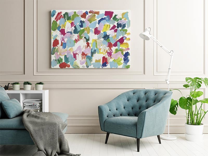 Cuadro floral abstracto con una combinación de trazos que añade estilo y originalidad a cualquier estancia. Ideal para renovar tus espacios. Diseño original de Marta Castet Bellocq. Disponible en diferentes tamaños y acabados.
