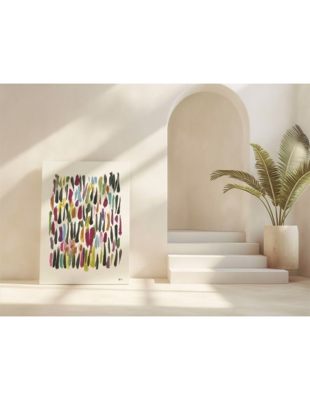 Una interpretación floral en clave abstracta, donde los trazos se entrelazan creando una pieza llena de vida y expresión. Perfecto para dar un aire diferente a tus espacios. Diseño original de Marta Castet Bellocq. Disponible en varios tamaños y acabados.