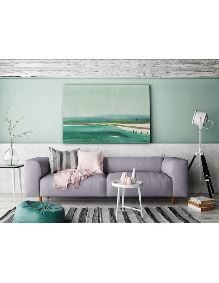 Vista de campo verde de líneas sencillas y plácidas. Reproducción de la Obra de Ruth Design